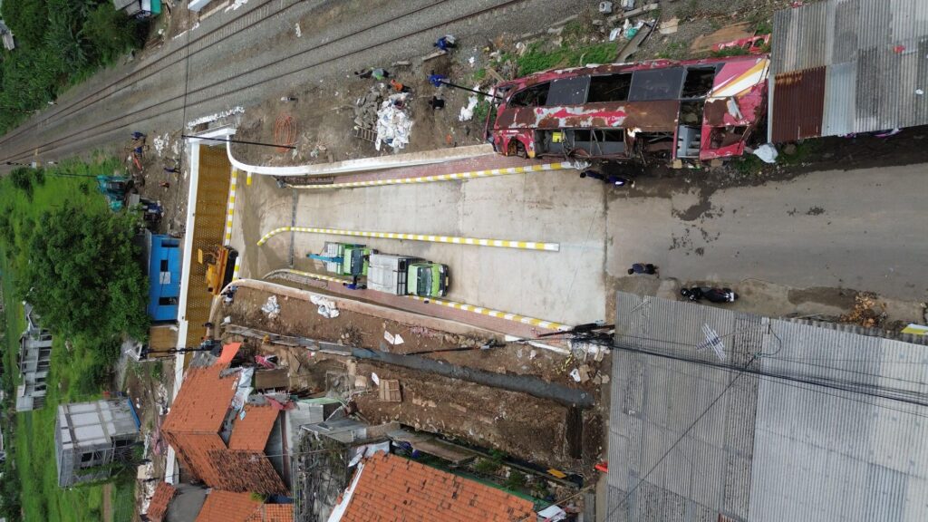 KARAWANG, ckpinfo.com – Menjelang peresmian Underpass Gorowong, Kabupaten Karawang, keberadaan bangkai sebuah bus yang dibiarkan tergeletak di area akses jalan menjadi sorotan warga. Hingga kini, bangkai bus tersebut masih berada di lokasi dan bahkan sebagian badannya menjorok ke badan jalan, sehingga berpotensi membahayakan pengguna jalan.