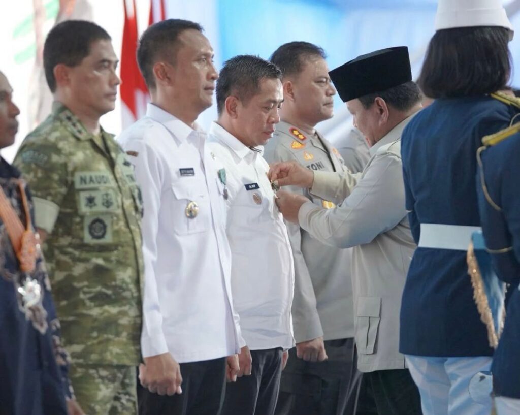 KARAWANG, ckpinfo.com – Bupati Karawang Aep Syaepuloh menerima Tanda Kehormatan Satyalancana Wirakarya dari Presiden Republik Indonesia Prabowo Subianto dalam rangkaian acara panen raya dan pengumuman swasembada pangan yang digelar di Kecamatan Cilebar, Kabupaten Karawang, Rabu (7/1/2026).