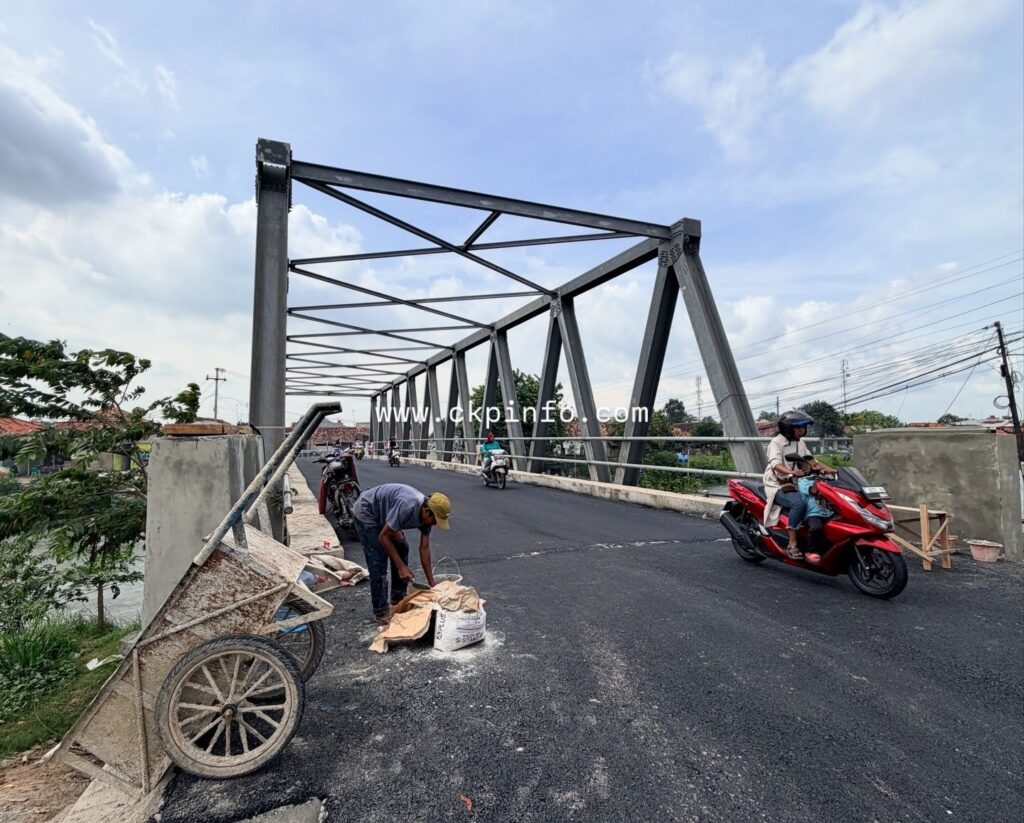 CIKAMPEK, ckpinfo.com – Proyek pembangunan Jembatan Ciselang kini memasuki tahap akhir pengerjaan setelah dilakukan pengaspalan hotmix beberapa waktu lalu. Pantauan di lokasi menunjukkan permukaan jalan terlihat licin (lecir), seiring masih berlangsungnya proses penyempurnaan sejumlah elemen pendukung jembatan.