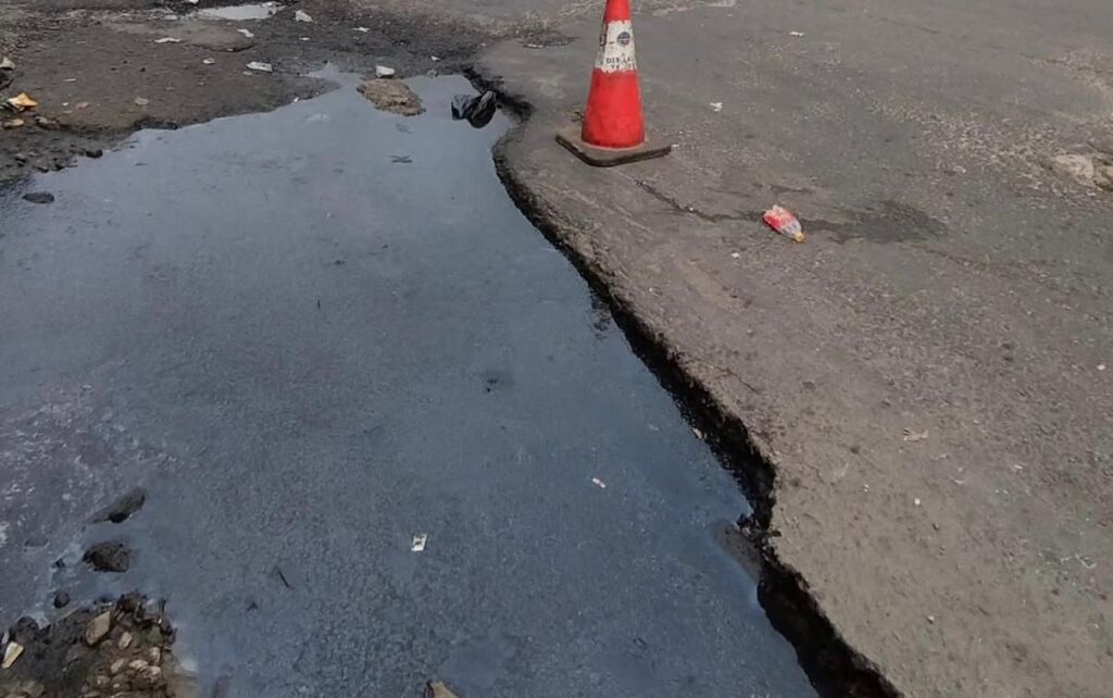 CIKAMPEK, ckpinfo.com – Kondisi jalan di kawasan lampu merah Cikampek menuju gerbang Tol Kalihurip dikeluhkan para pengguna jalan. Pasalnya, kerusakan di titik tersebut semakin parah hingga tergenang air dan menyerupai kolam ikan, terutama saat hujan turun.