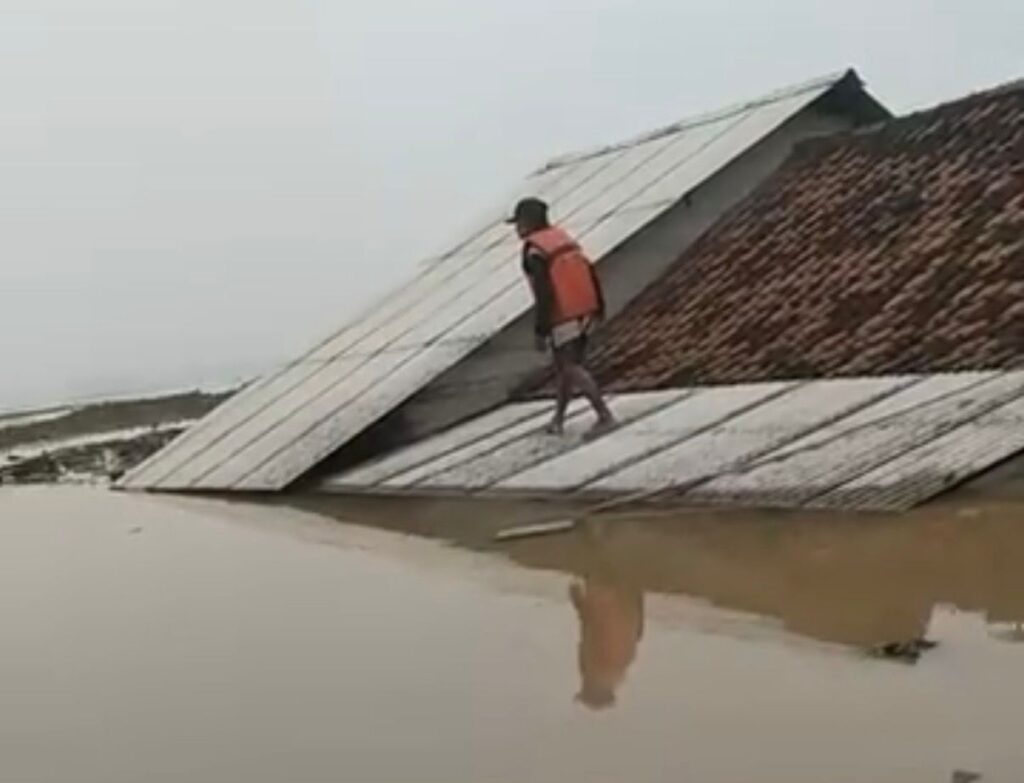 Sementara itu, kondisi yang lebih parah dialami rumah-rumah warga di sekitar lokasi. Air banjir dilaporkan mencapai atap rumah, memaksa sebagian besar warga untuk mengungsi dan menyelamatkan barang-barang berharga seadanya.