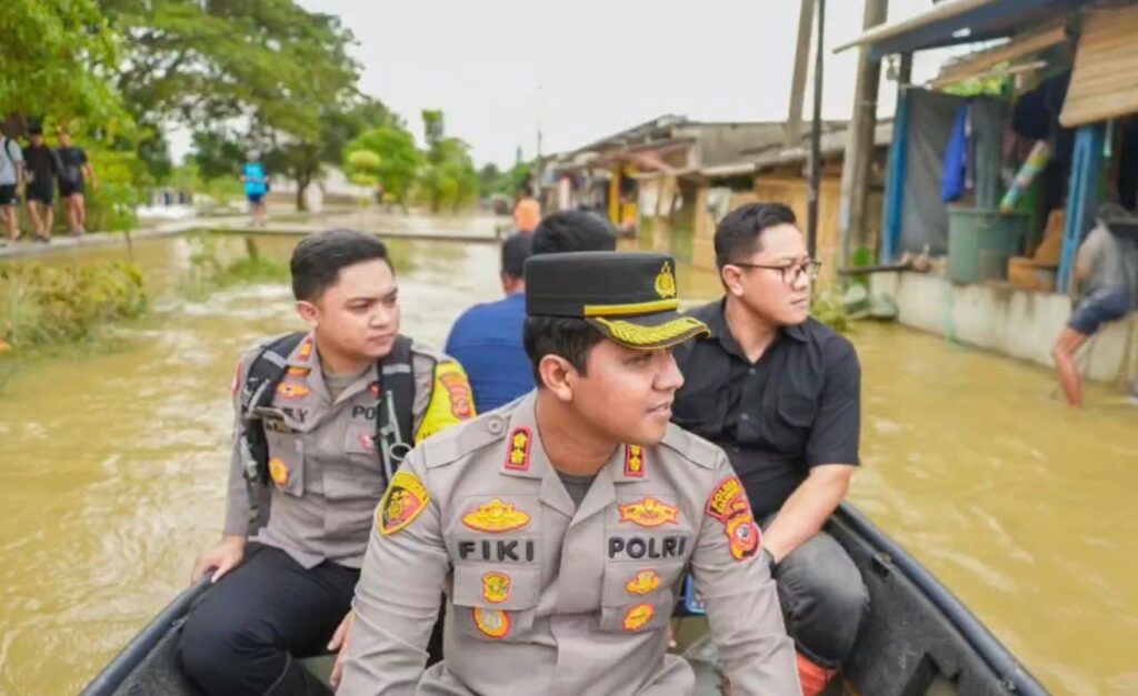 KARAWANG, ckpinfo.com – Kepolisian Resor (Polres) Karawang melaksanakan penanganan bencana banjir yang melanda sejumlah wilayah di Kabupaten Karawang akibat meluapnya Sungai Citarum dan Sungai Cibeet. Bencana banjir tersebut sebelumnya berdampak pada 30 desa yang tersebar di 17 kecamatan, dengan salah satu wilayah terdampak terparah berada di Desa Karangligar, Kecamatan Telukjambe Barat.
