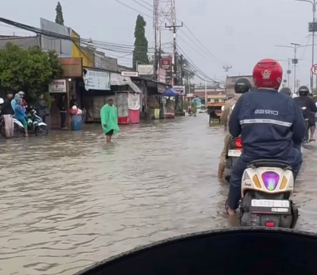KARAWANG, ckpinfo.com – Hujan deras yang mengguyur wilayah Karawang sejak malam hingga pagi hari menyebabkan sejumlah ruas jalan tergenang banjir. Salah satu titik terdampak berada di Jalan Raya Kosambi, tepatnya di depan Makam Pahlawan, pada Jumat (23/1/2026).