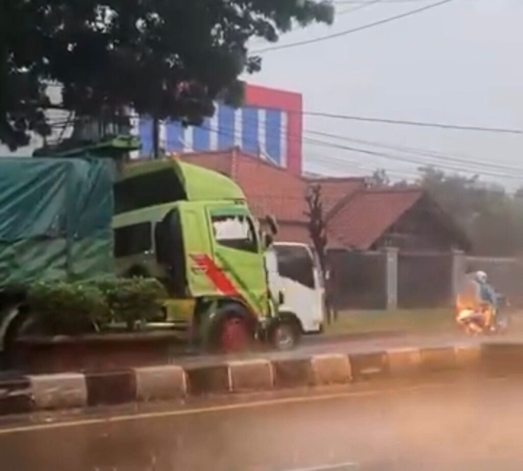 Warga lainnya juga melaporkan kondisi kendaraan yang terlibat kecelakaan tampak mengalami kerusakan cukup parah pada bagian depan. “Min ini truk kayaknya habis kecelakaan, bagian depannya rusak, belum dievakuasi jadi macet min,” ucapnya.