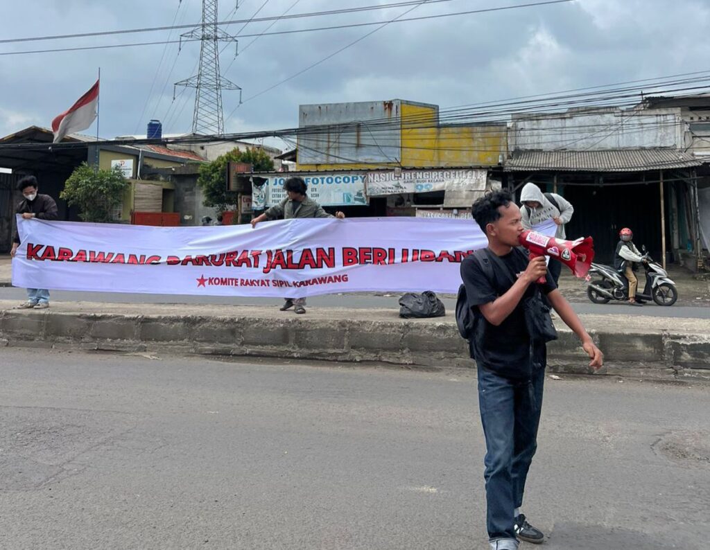 Aksi ini dilakukan sebagai bentuk tuntutan agar pihak terkait segera melakukan perbaikan jalan rusak dan berlubang yang selama ini dikeluhkan warga dan pengguna jalan. Kondisi jalan Klari–Kosambi diketahui kerap memicu kecelakaan, terutama pada malam hari dan saat hujan karena lubang tertutup genangan air.
