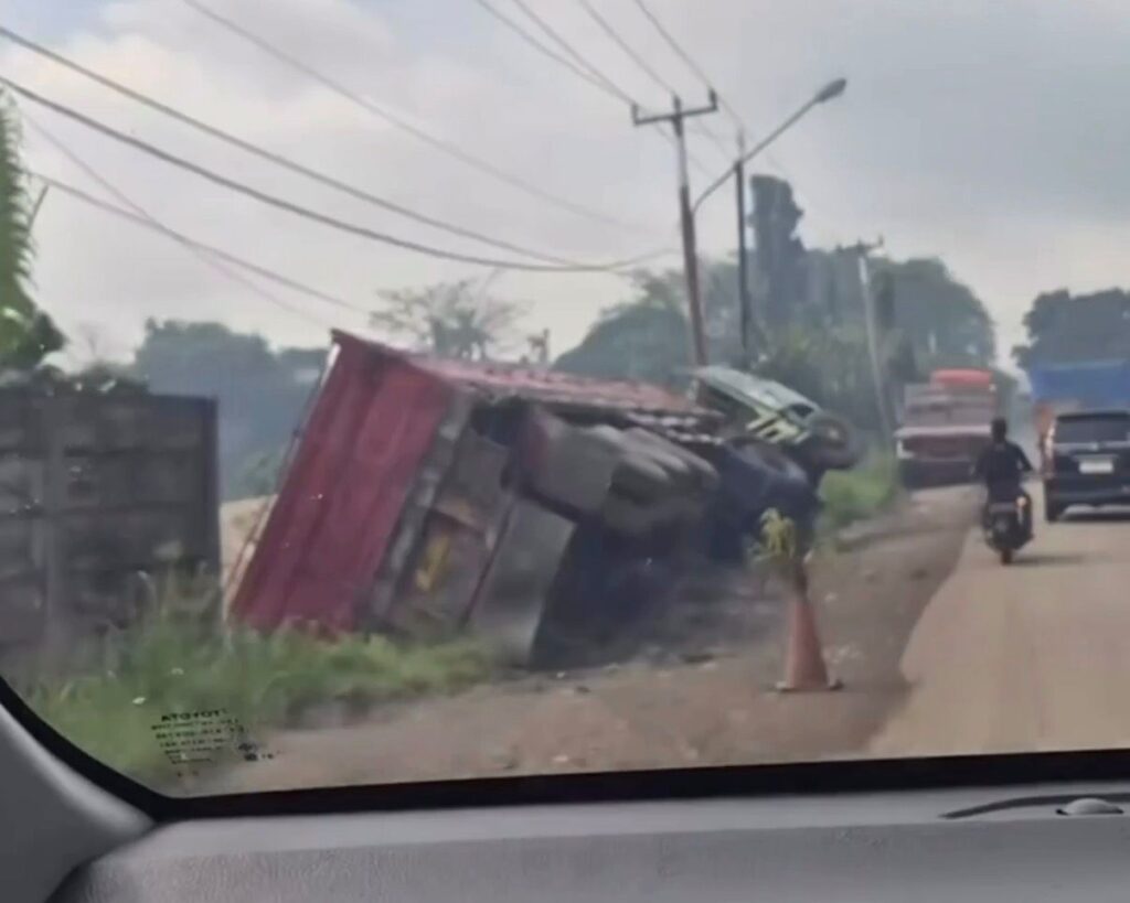 CIKAMPEK, ckpinfo.com – Sebuah truk besar yang terguling di kawasan Jalan Industri Kalihurip, Dawuan, Cikampek, hingga pagi ini masih terlihat belum dievakuasi. Peristiwa tersebut kembali menjadi sorotan warga, mengingat posisi kendaraan yang masih berada di lokasi dinilai dapat membahayakan pengguna jalan.