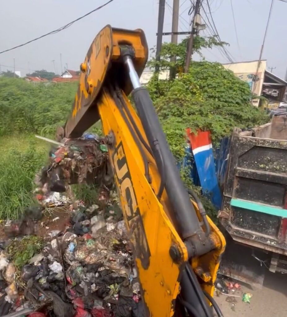 Dari pantauan di lokasi, sejumlah petugas tampak mengangkut tumpukan sampah menggunakan alat berat, sekaligus membersihkan berbagai material sisa pembuangan liar seperti puing besi, kayu bekas, hingga sampah campuran yang menumpuk di area tersebut.