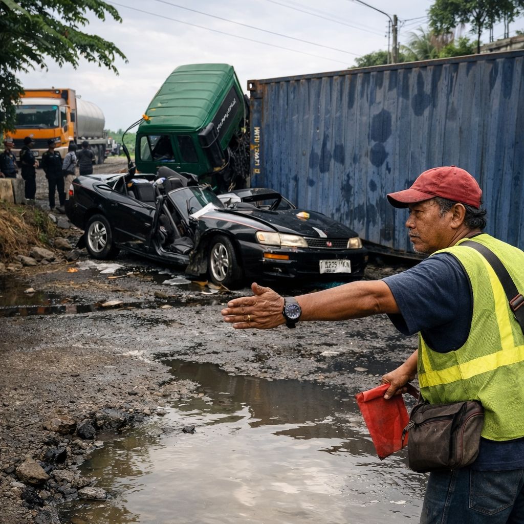 Kasatlantas Polres Karawang, AKP Sidirianto, mengungkapkan bahwa truk kontainer tersebut masuk ke jalur underpass karena diduga diarahkan oleh seorang relawan pengatur lalu lintas alias “pak ogah.” Padahal, jalur tersebut merupakan jalan desa yang tidak diperuntukkan bagi kendaraan besar bertonase berat.