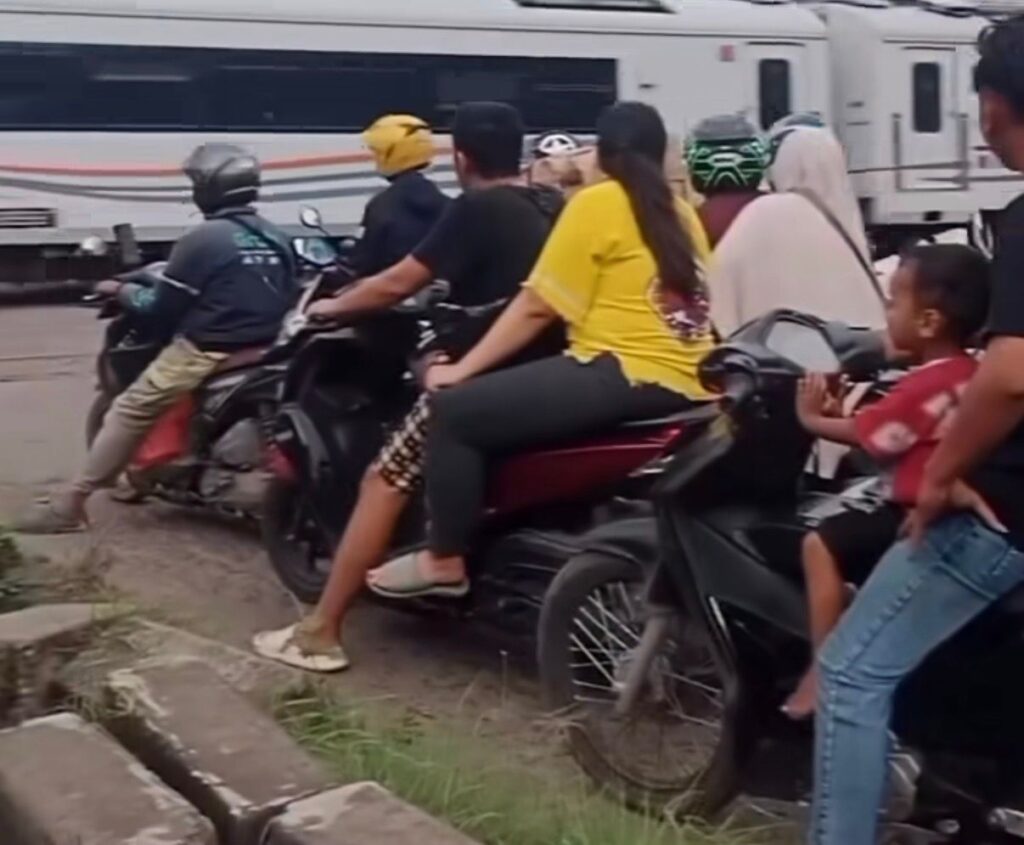 Dalam sebuah video berdurasi sekitar 8 detik yang ia tandai ke media sosial ckpinfo, terlihat beberapa pengendara motor nekat melawan arus tepat di area perlintasan KA. Perekam video bahkan menyertakan komentar menohok sebagai bentuk kekesalannya.