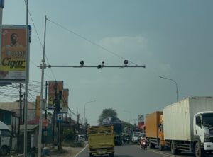 CIKAMPEK, ckpinfo.com – Sebuah kamera tilang elektronik (ETLE) terpantau telah resmi terpasang di depan PO Bus Sinarjaya, Pangulah, Kecamatan Kotabaru, Karawang, pada Rabu pagi (9/7). Pemasangan ini menjadi bagian dari upaya penertiban dan peningkatan kepatuhan pengguna jalan terhadap aturan lalu lintas.