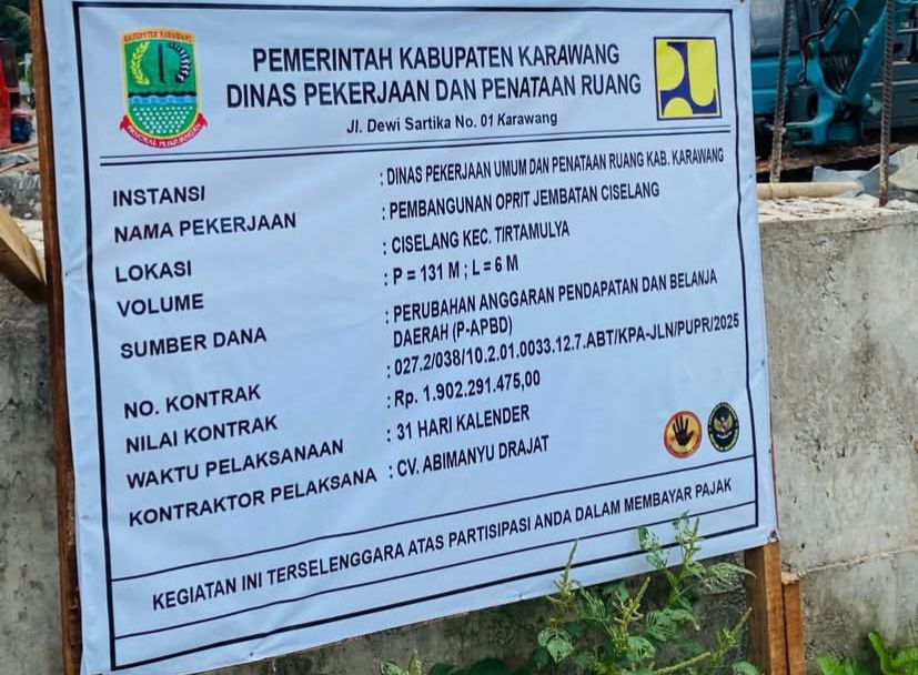 Proyek pembangunan oprit ini menggunakan anggaran perubahan APBD dengan nilai kontrak mencapai Rp 1.902.291.475, dan pengerjaannya berada di bawah tanggung jawab Dinas Pekerjaan Umum dan Penataan Ruang (PUPR) Kabupaten Karawang.