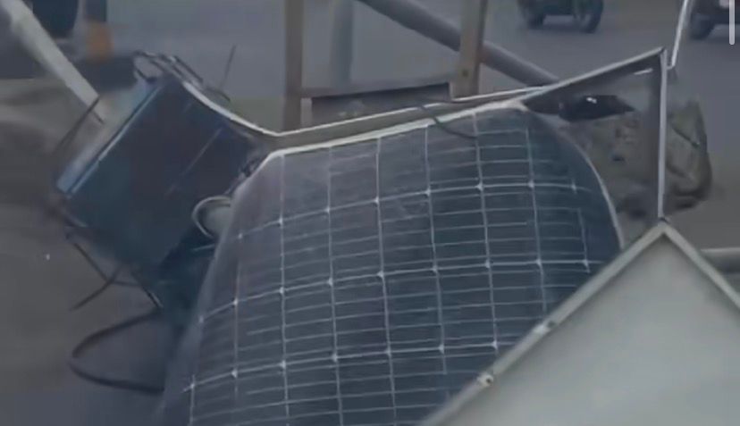 Tiang yang roboh tersebut tampak melintang di atas aspal, menimbulkan potensi bahaya terutama bagi pengendara motor yang melaju dengan kecepatan tinggi. Beberapa warga yang berada di lokasi langsung berusaha memberikan tanda agar pengendara lain mengurangi kecepatan.