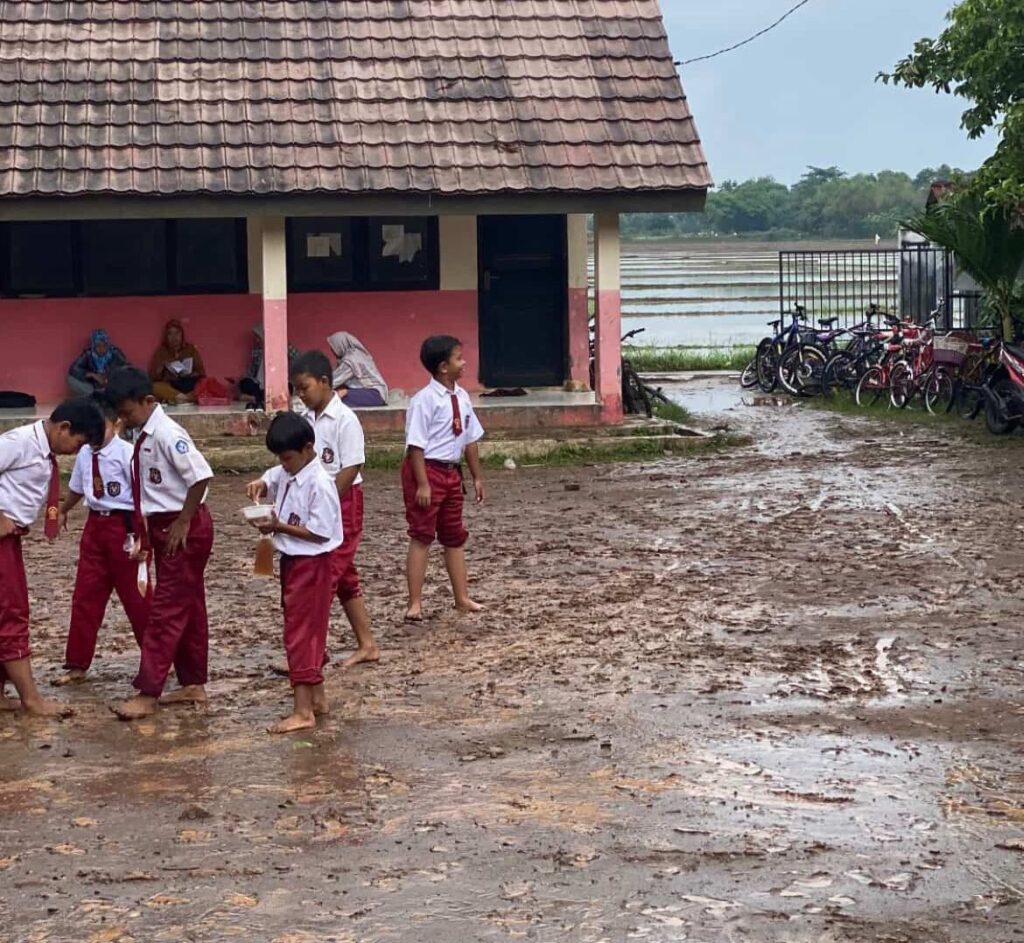 Dalam unggahannya, akun tersebut memperlihatkan kondisi sekolah yang dinilai mengkhawatirkan, terutama akses jalan dan area lapangan sekolah yang masih beralaskan tanah. Situasi tersebut terlihat semakin parah setelah diguyur hujan, sehingga lingkungan sekolah tampak becek dan sulit dilalui.
